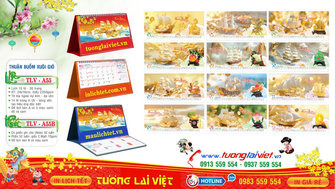 ➤ Mẫu Lịch Để Bàn bao gồm: